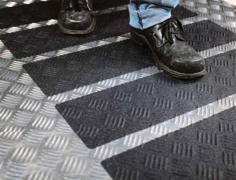 Protiskluzová lepicí páska s hrubým abrazivním povrchem pro oblasti s extrémní hustotou provozu, pro zaolejované vlhké oblasti. Páska pro strojírny, stavby silnic, paluby lodí a letadel, vlaky, stavební, zemědělskou a lesní techniku.