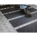 Páska se skládá z velkých abrazivních částic přilepených tuhým, trvanlivým polymerem k rozměrově stálé plastové fólii. Zadní strana je potažena lepidlem citlivým na tlak pokrytým snímatelnou ochrannou vložkou. Pokud je výrobek vystaven pouze pěšímu provozu, vydrží minimálně 1 milion přechodů (přibližně 3 roky, pokud kolem nich projde 1 000 lidí denně). Kolová doprava výrazně sníží životnost produktu.