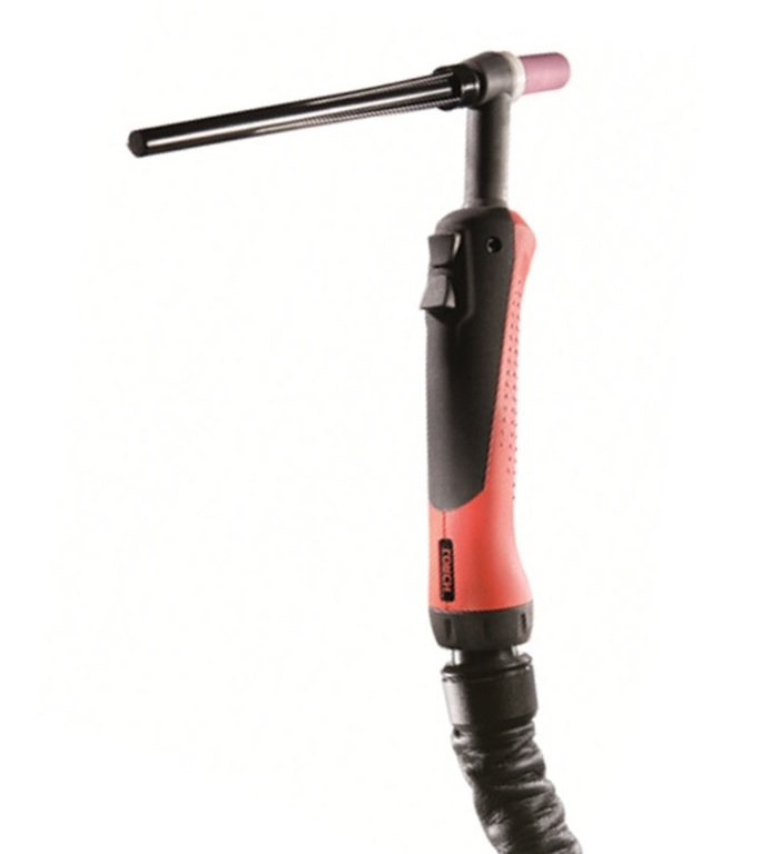 Plynem chlazený hořák Lorch je určen ke svařování TIG při max. proudu 130 A AC/180 A DC, zatěžovatel 35 %. Wolframové elektrody o průměru 1,0–4,0 mm. Ovládání dvojitou spouští, kulový kloub na rukojeti, ohebný kabelový svazek s koženým převlekem. Délka 8 metrů.