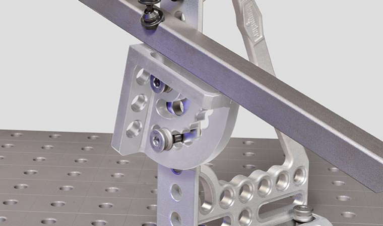 Úhlová konzola PROFIPlusLINE k upínání úhlových dílů nebo jako doraz, pro svařovací stoly s otvory D28.