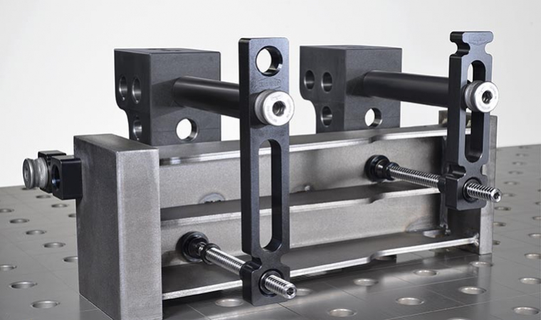 Univerzálny doraz z tvrdenej ocele pre zváracie stoly so systémom upínania 22. Na premostenie väčších nosných plôch, ako bočný doraz pre veľké nosníky.