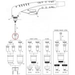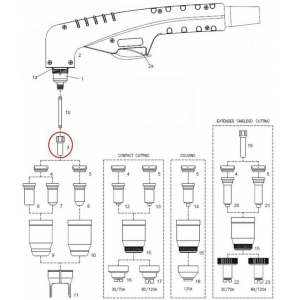 Elektróda pre ručný plazmový horák PT-100 a Parker SCP 120. Dĺžka 25 mm, závit M8 x 0,75, priemer 6,8 mm.