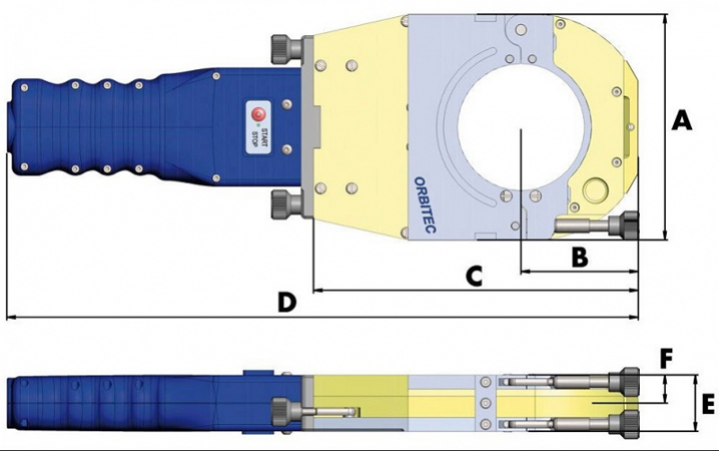 Plynom chladená uzavretá zváracia hlava pre orbitálne zváranie. Umožňuje vysokú tepelnú záťaž (bez vodného chladenia) a zváranie v tesných priestoroch. Rozsah 9,53 – 114,3 mm.