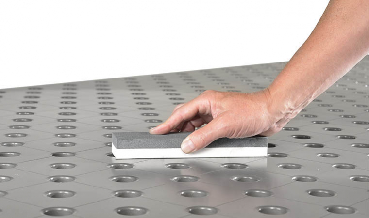 2-stranný brúsny čistiaci kameň (hrubý/jemný) Demmeler na ošetrenie povrchov systémových zváracích stolov a systémových dielov.