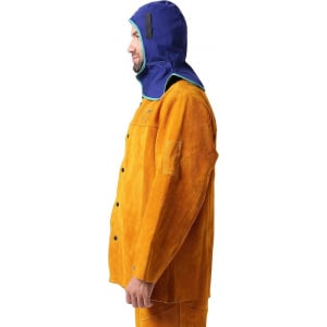 AP-6670 modrá ohňovzdorná ochranná kapucňa pod zváraciu kuklu v univerzálnej veľkosti. Používa sa pod kuklu s cieľom chrániť uši, krk a hornú časť hlavy zvárača.