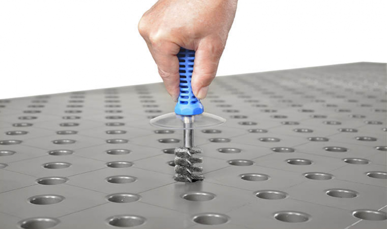 Okrúhla kefka na čistenie systémových otvorov D22 pre zváracie stoly. S ochranou proti striekajúcej vode.