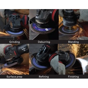 Kotúč 1169F je dostatočne všestranný na to, aby zvládol odstraňovanie materiálu a zušľachťovanie povrchu v jednom kroku, pričom často vytvára povrch o jeden stupeň jemnejší ako vláknitý kotúč rovnakej zrnitosti. Je určený pre aplikácie so stredným až vysokým tlakom, kde je kvalita a povrchová úprava kľúčová: