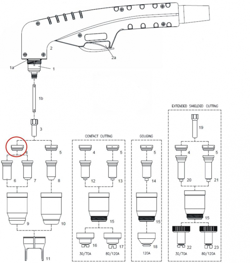 Rozdeľovač vzduchu (krúžok, difúzor) pre ručný plazmový horák PT-100 a SCP 120.