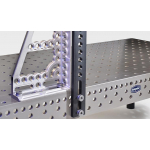 Dorazová lišta z kalenej ocele slúži ako spoľahlivý posuv na doraz v každej upínacej situácii. Systém otvorov 28.