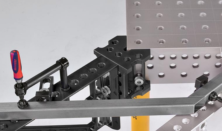 Rohový modul slúži ako diagonálne rozšírenie stola, prizma, V-blok, podpora, zarážka, doraz, na upnutie dlhých profilov a nosníkov, aj na menšie pracovné stoly – rohový modul umiestnený v rohu a predĺžený o dva uhly. Pre zváracie stoly s otvormi D28.