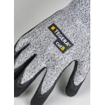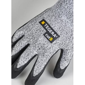 Rukavice TEGERA 431 s technológiou proti prerezaniu CRF® (Cut Resistant Fibre) sú vysoko odolné, pieskovaný povrch poskytuje dobrý úchop vo vlhkom a mierne mastnom prostredí, nitrilové dlane sú odolné voči oleju a mazivám.