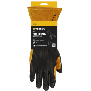 Zváračské rukavice TEGERA 7788 odolné proti kontaktnému teplu do 100 °C. Vysoká citlivosť na končekoch prstov, spevnené prsty a palec, prémiová kozia koža, vlákna odolné voči teplotám, dokonalý strih.
