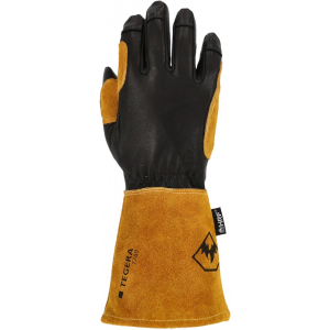 Rukavice TEGERA 7789 s vynikajúcou flexibilitou sú vyrobené z čiernej zrnitej kozej kože prémiovej kvality s manžetou z delenej kravskej kože vystuženou plátnom. Vysokokvalitné materiály ponúkajú vynikajúcu flexibilitu a dokonalý strih.