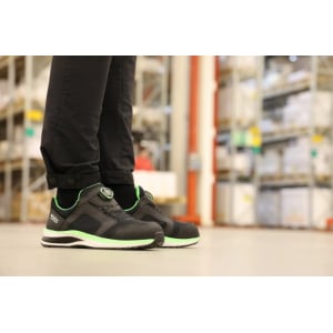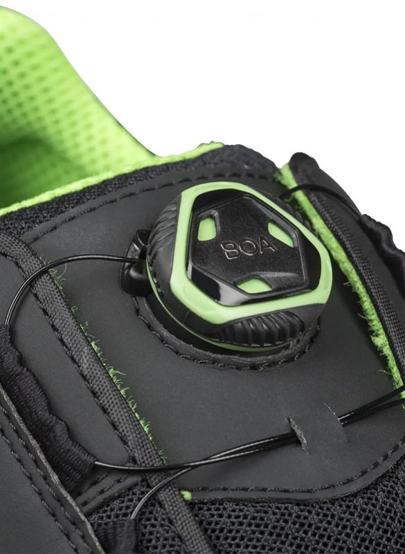 Veľmi pohodlná, priedušná športová topánka TEMPUS 5668. Pokročilé tlmenie nárazov, upínanie BOA Fit, ochranná špička, pružná textilná vložka proti preniknutiu klincov, odolná priľnavá podrážka, zelené detaily.