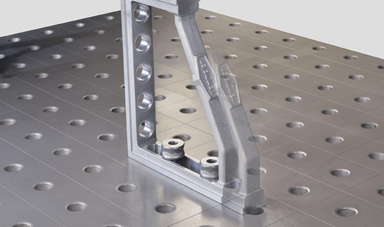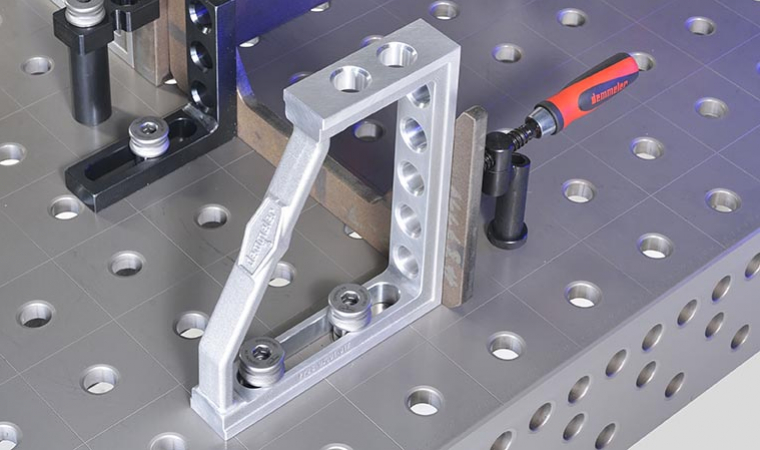 PROFIPremiumLINE príložný a upínací uholník z hliníka a titánu pre zváracie stoly s otvormi 28.