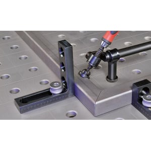 PROFIPlusLINE uholník z brynierovanej ocele na presné upínanie obrobkov na zvárací stôl so systémom otvorov 16, ideálny pre stiesnené priestory.
