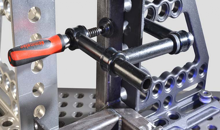 PROFIPremiumLINE uholník z liatiny na presné upínanie obrobkov na zvárací stôl so systémom otvorov 28. Používa sa napríklad ako doraz, rozšírenie stola alebo na upevnenie uhlových obrobkov pod uhlom 90°.