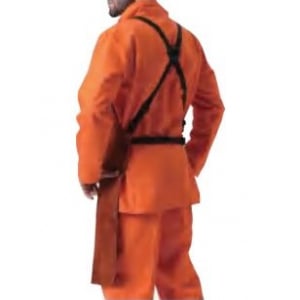 AP-6300 zástera z hovädzej štiepenky s niťou Kevlar pre úplnú ochranu hrudníka, proti rozstreku a plameňu pri zváraní.